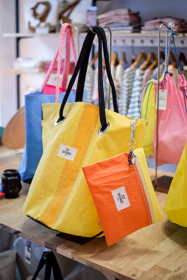 Step inside the Sarzeau boutique and discover a wide range of recycled sailcloth bags from backpacks and travel bags to stylish belt bags. Each bag is one-of-a-kind, combining robust durability with timeless nautical elegance — perfect for everyday life or seaside adventures.