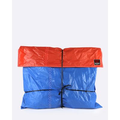 Ce produit est confectionné avec des empiècements de spinnaker. Inventé en 1937, le nylon, qui compose ce tissu de voile, est la plus ancienne fibre synthétique. Sa légèreté, son élasticité et sa résistance à la rupture en font le matériau idéal pour le spinnaker des voiliers. Souvent de couleurs multiples, le “spi” est caractérisé par sa forme de bulle à l’avant des voiliers qui naviguent au portant.