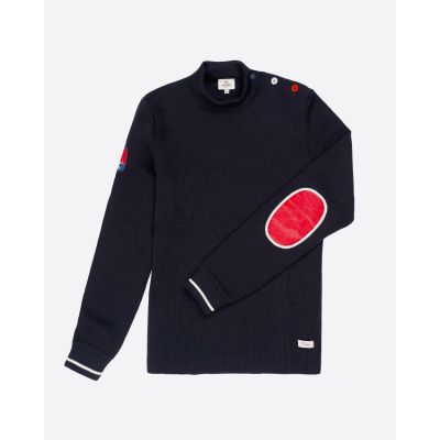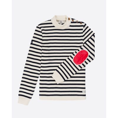 Our jumpers and cardigans stand out thanks to their elbow patches made from 100% recycled sailcloth. An original and colourful touch for your sailor jumper.